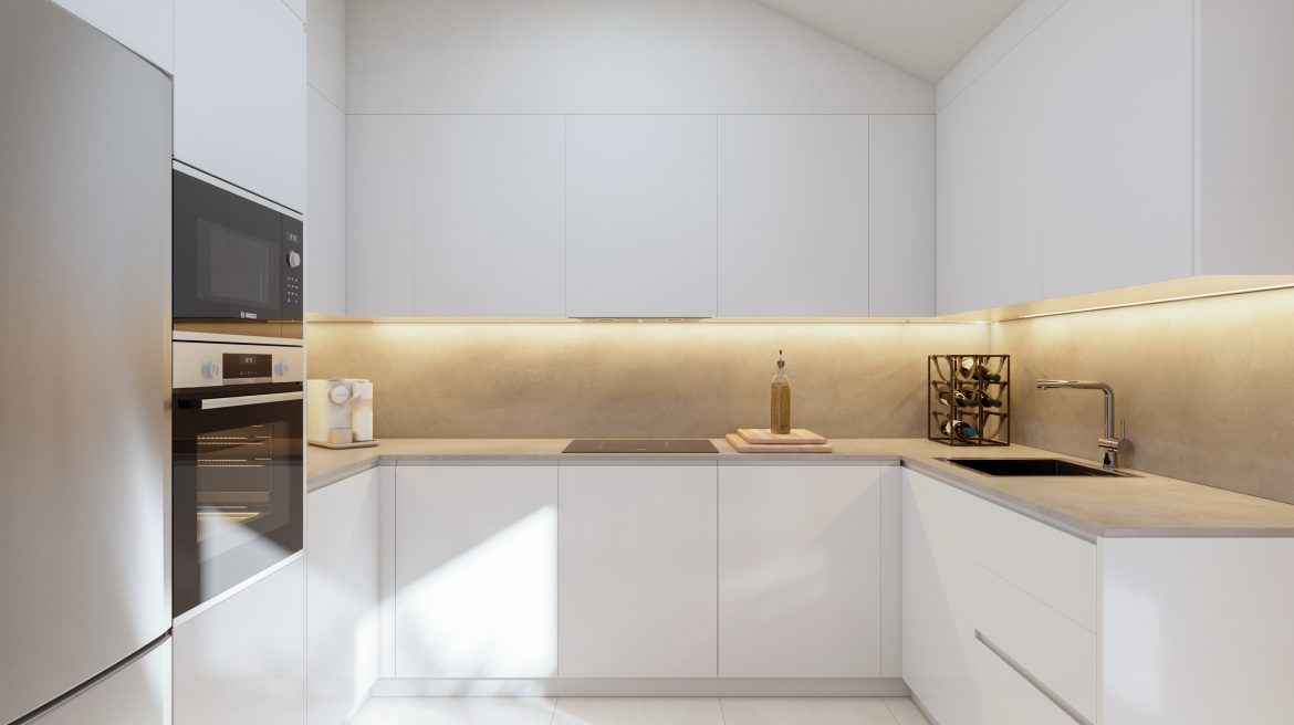 High-quality finishes, with rectified porcelain stone-effect flooring that creates a seamless open-plan living space.